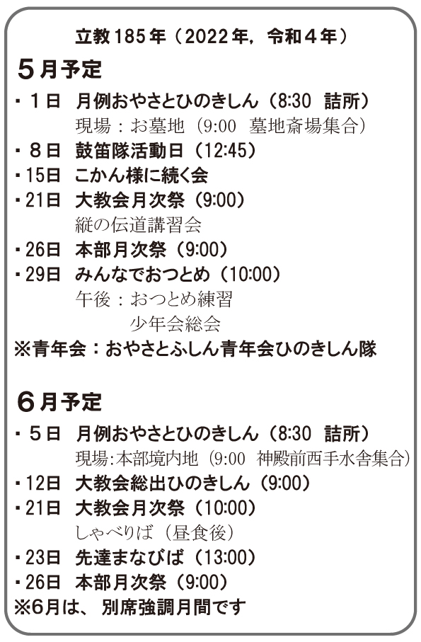 【予定】立教185年(2022年)5~6月