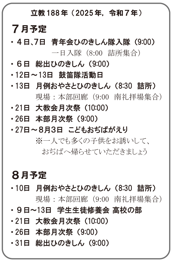 【予定】立教188年(2025年)7~8月