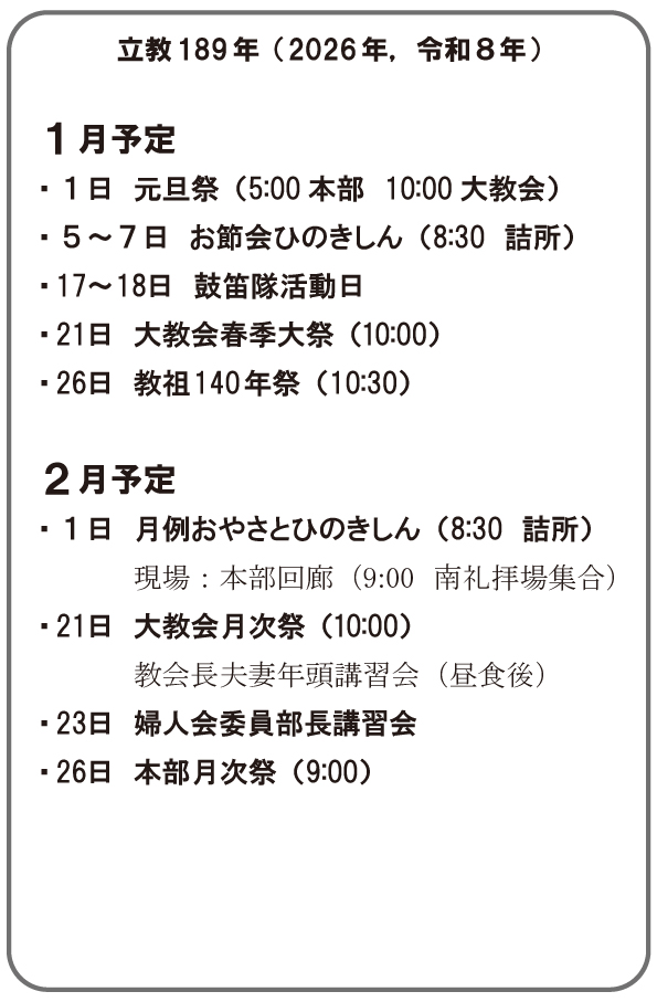 【予定】立教189年(2026年)1~2月